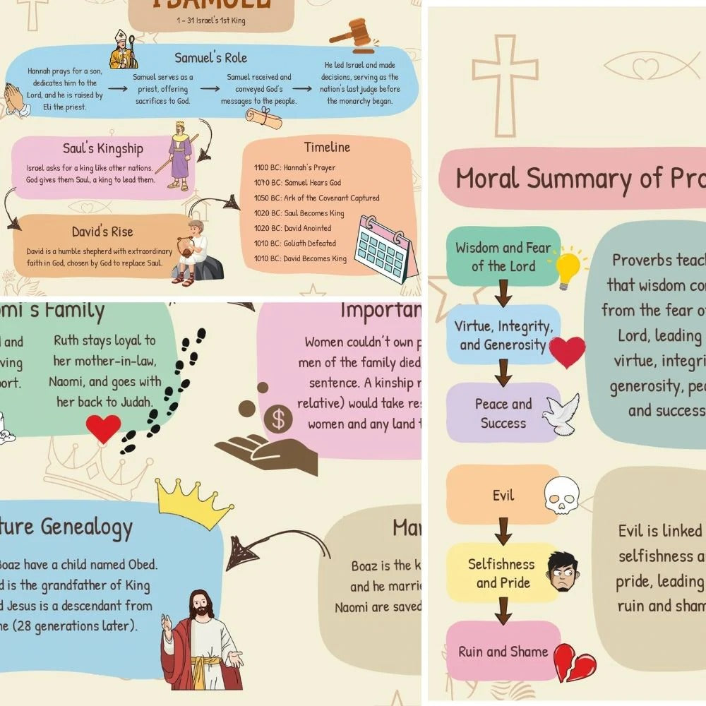 Make the Bible easy, fun, and unforgettable for the whole family with 71 beautifully illustrated pages that simplify each book of the Bible — perfect for kids, teens, and adults.